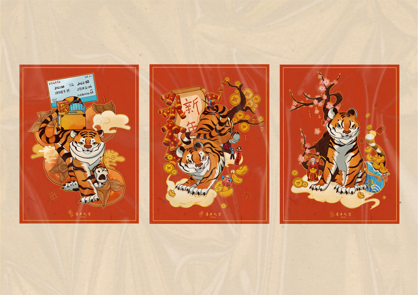 虎年创意插画🐯 恭贺新春 虎年大吉