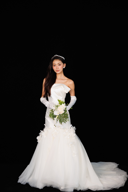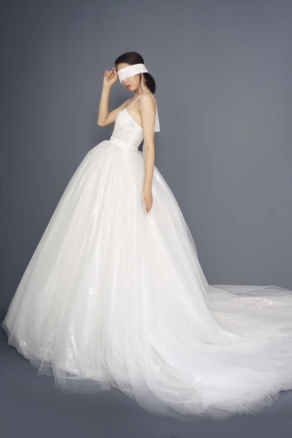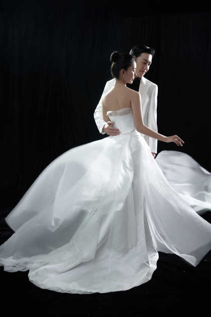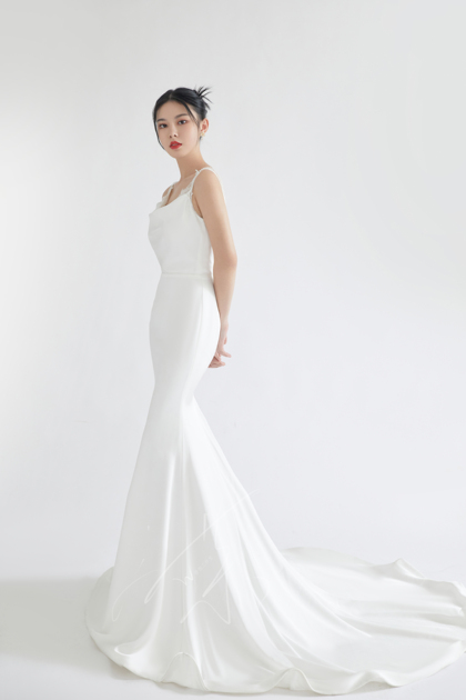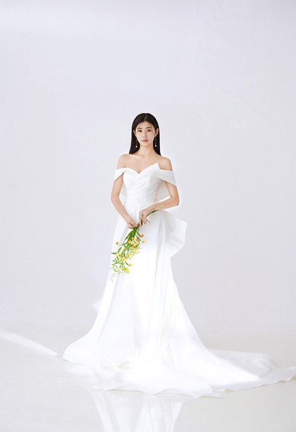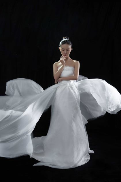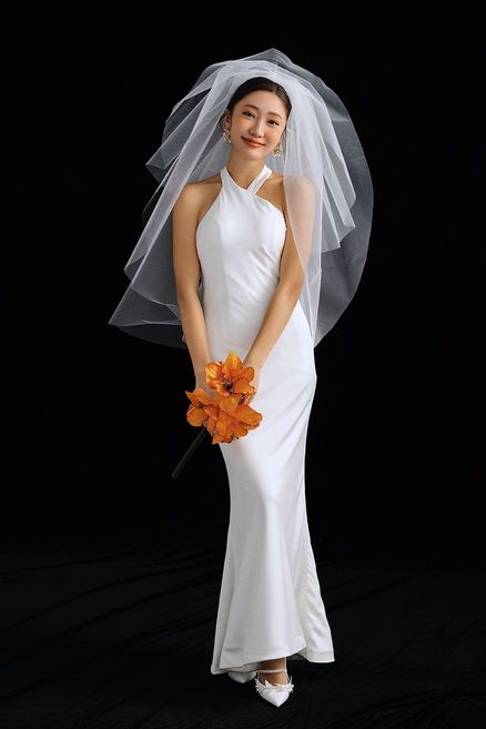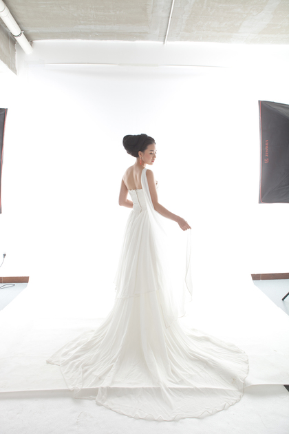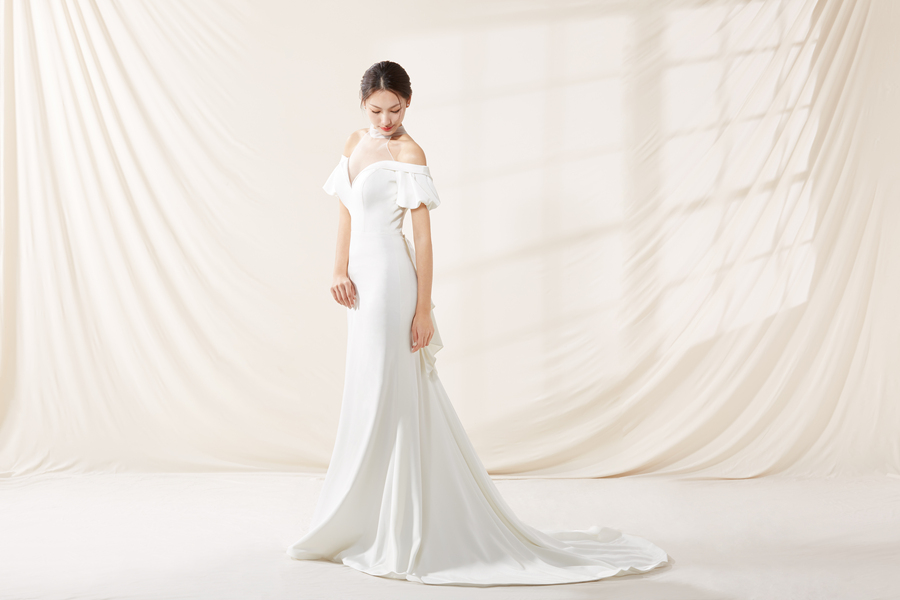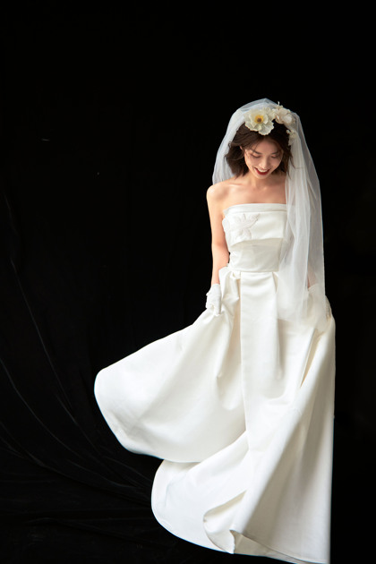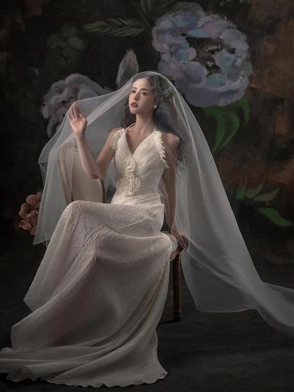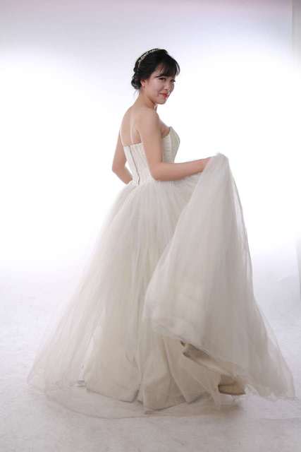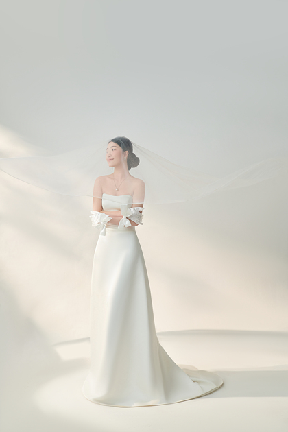 韩系棚拍单色婚纱