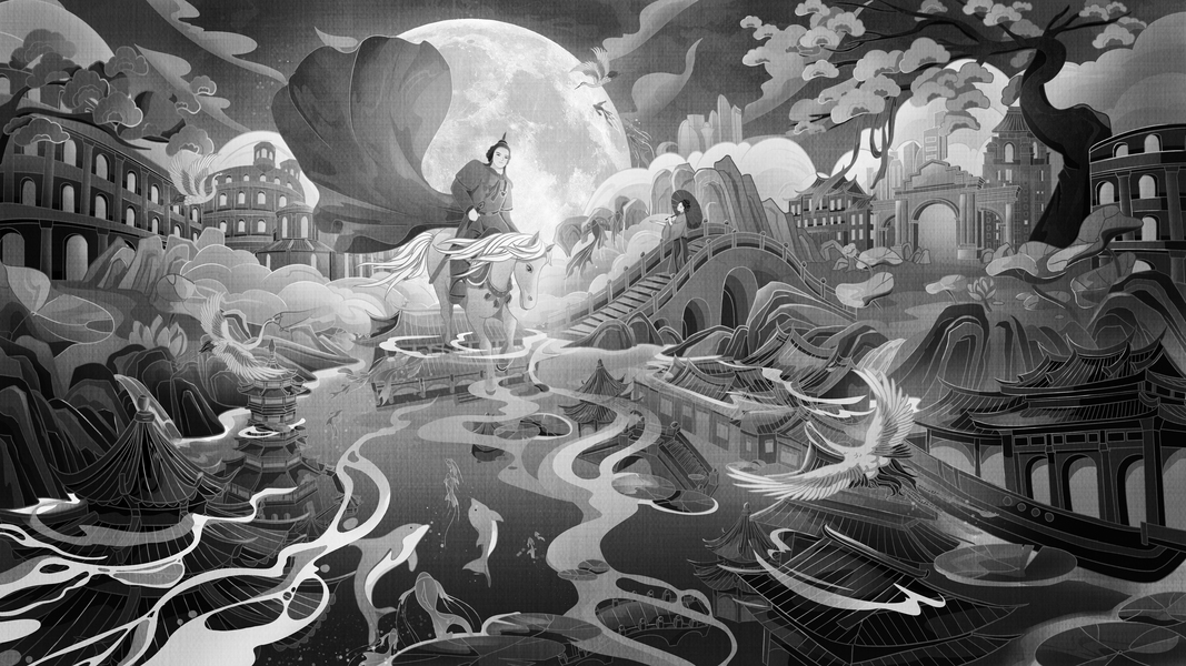 中国风黑白气氛图绘制