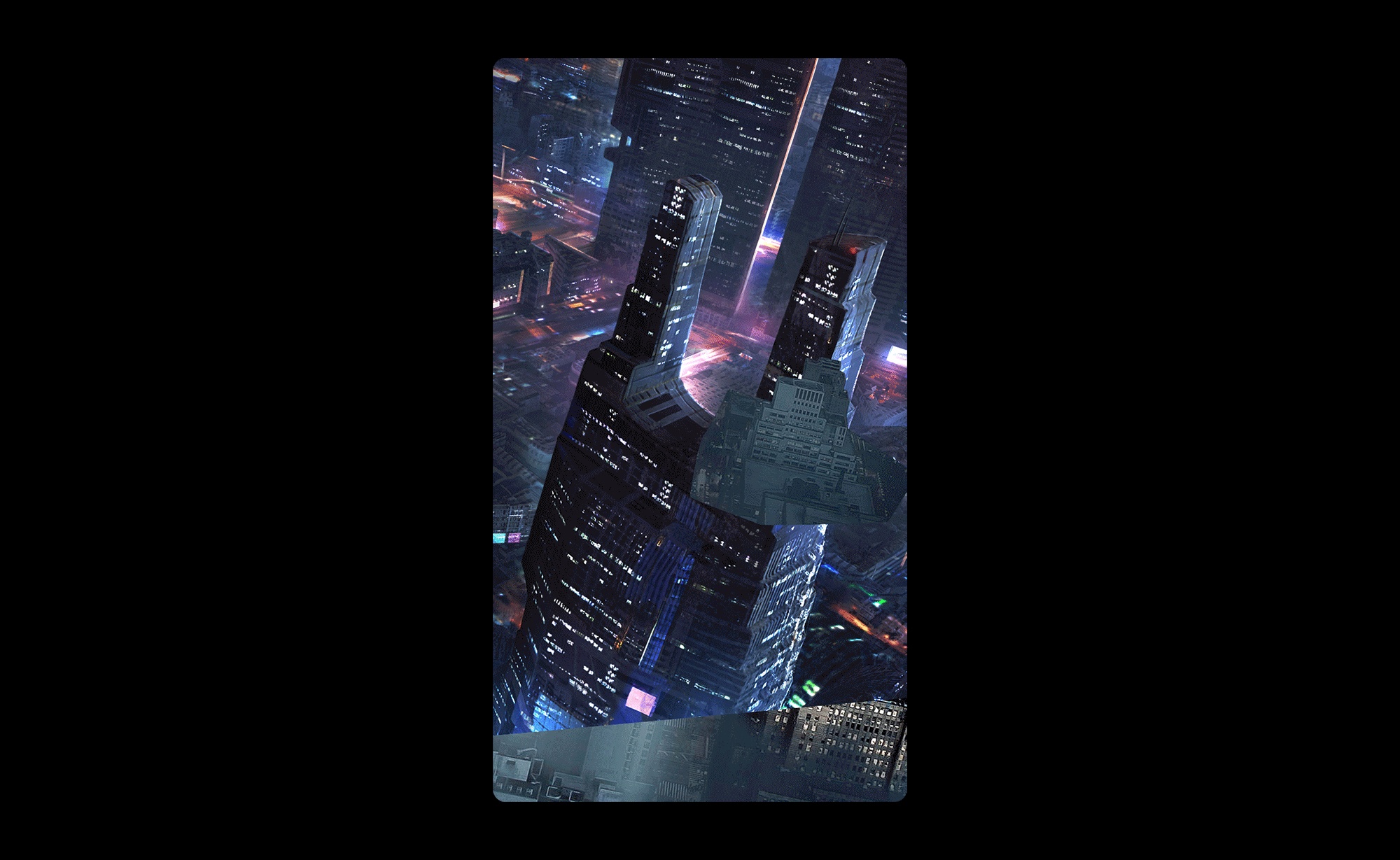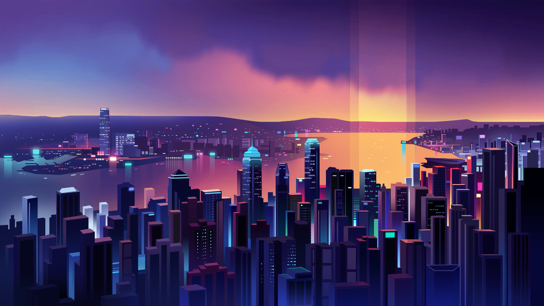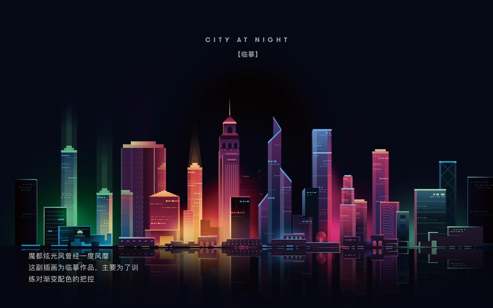 【 插画/图案设计】《夜色无眠》城市渐变线条海报