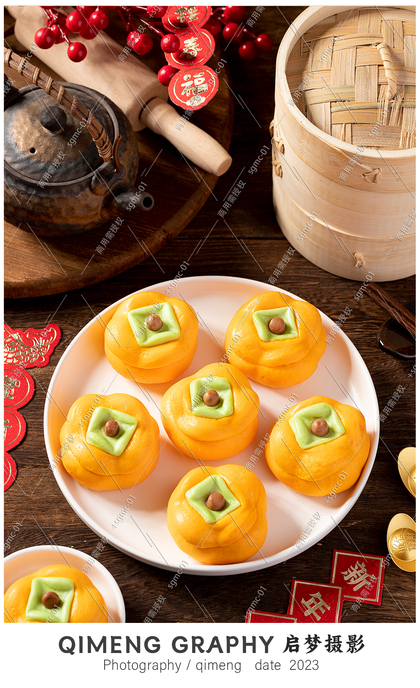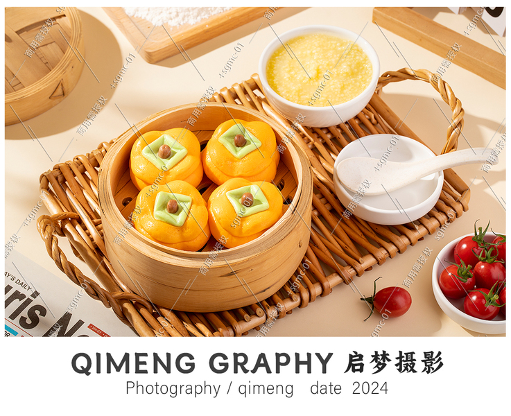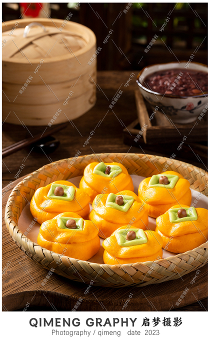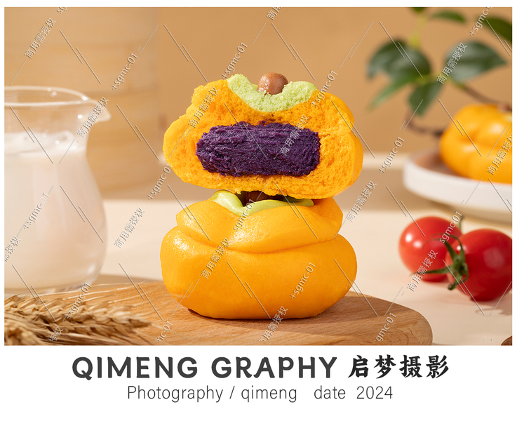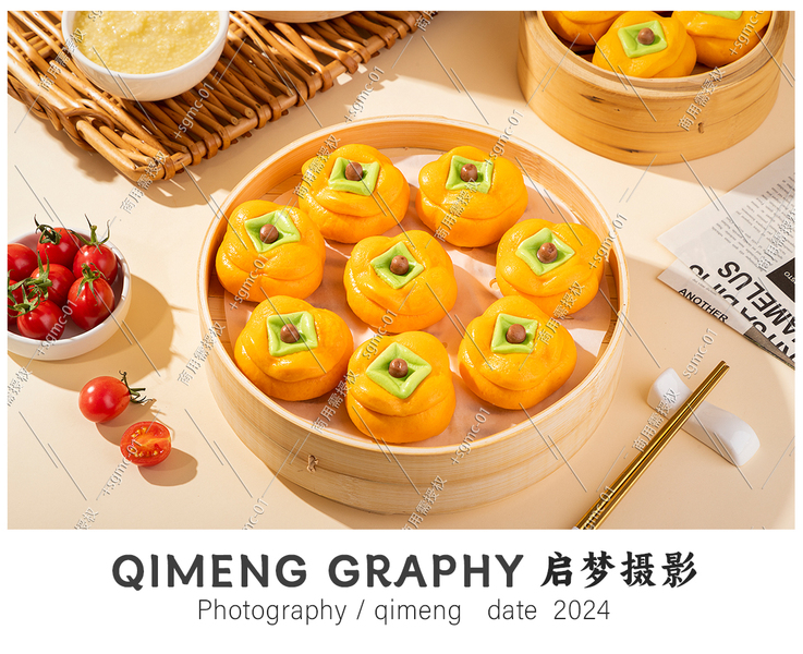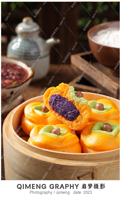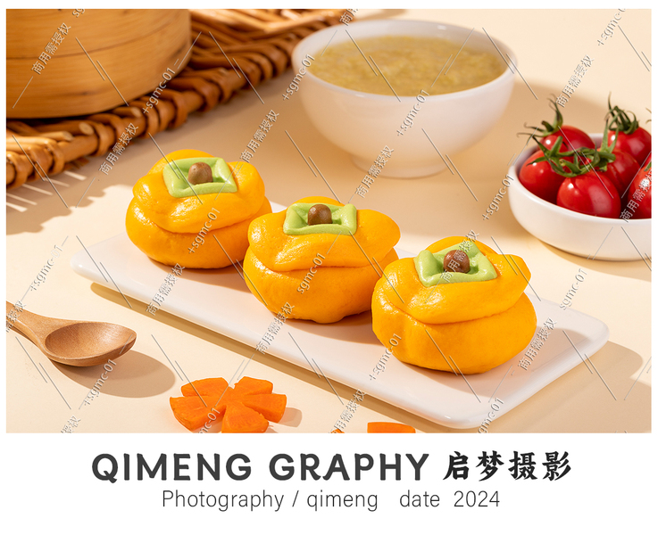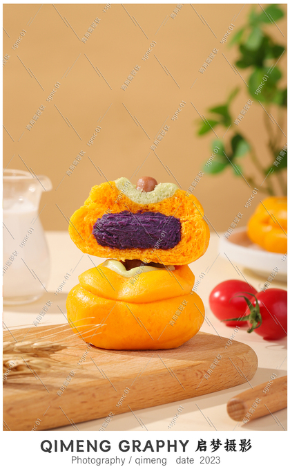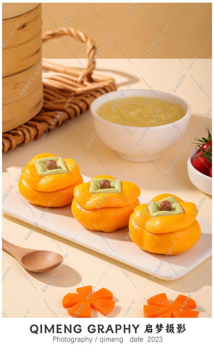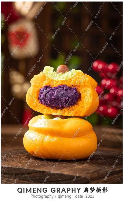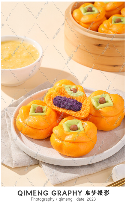 小吃糕点 柿柿如意卡通馒头 柿子紫薯包子X 启梦摄影