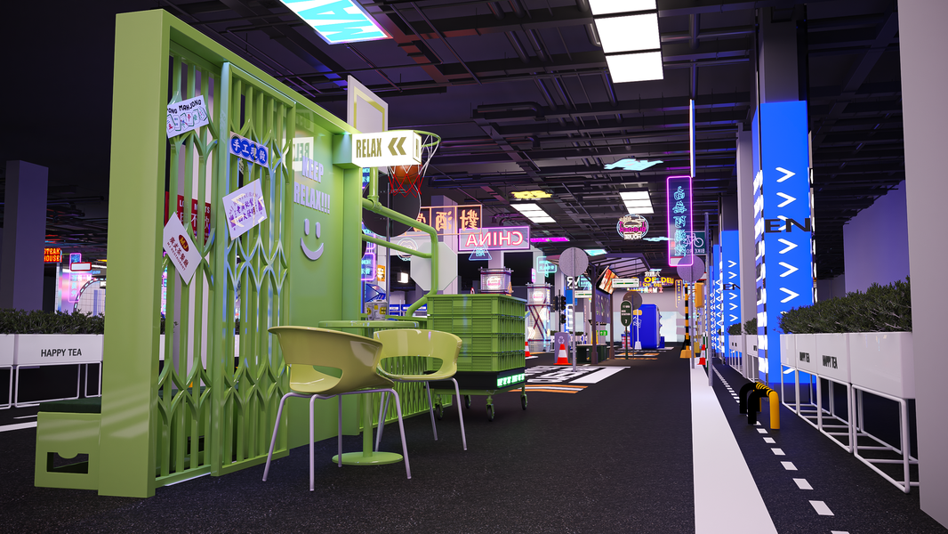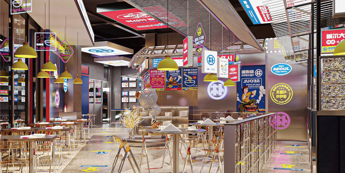 现代港风美食商业街空间美陈设计