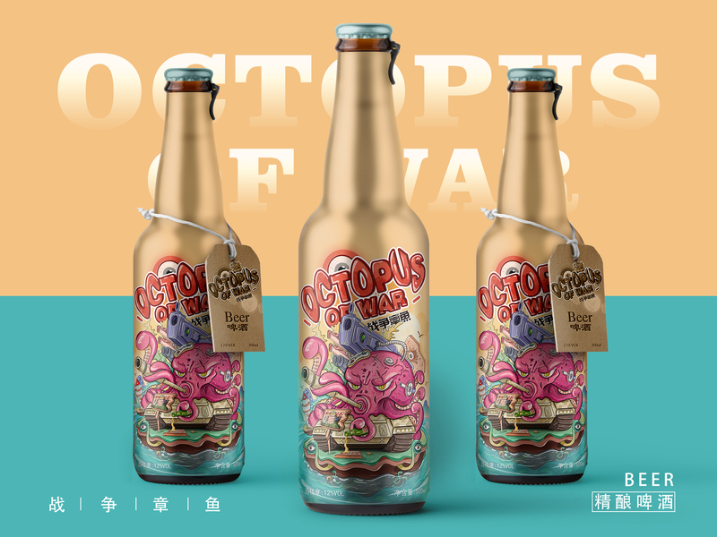 战争章鱼精酿啤酒×包混合果汁包装设计