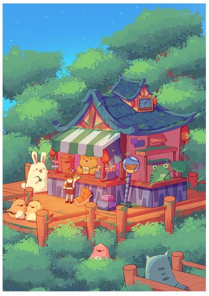 《森林、店铺》插画主题创作练习