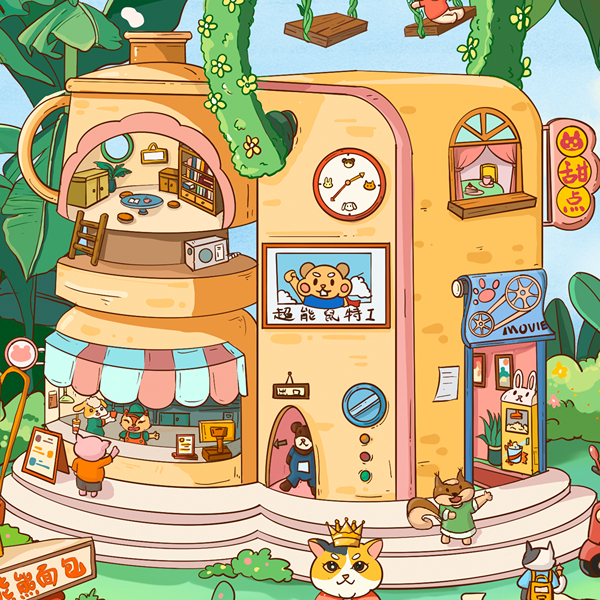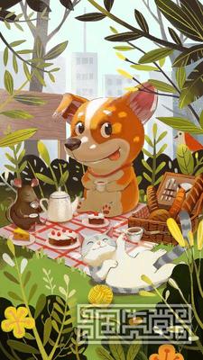 忘忧小镇 动物小场景插画