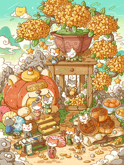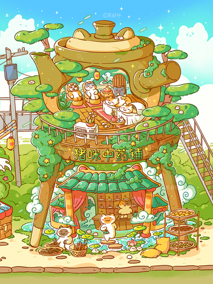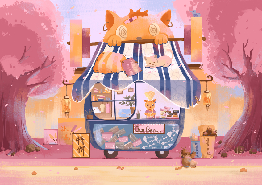 【8月-10月】喵子小铺子系列和小场景插画