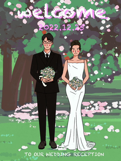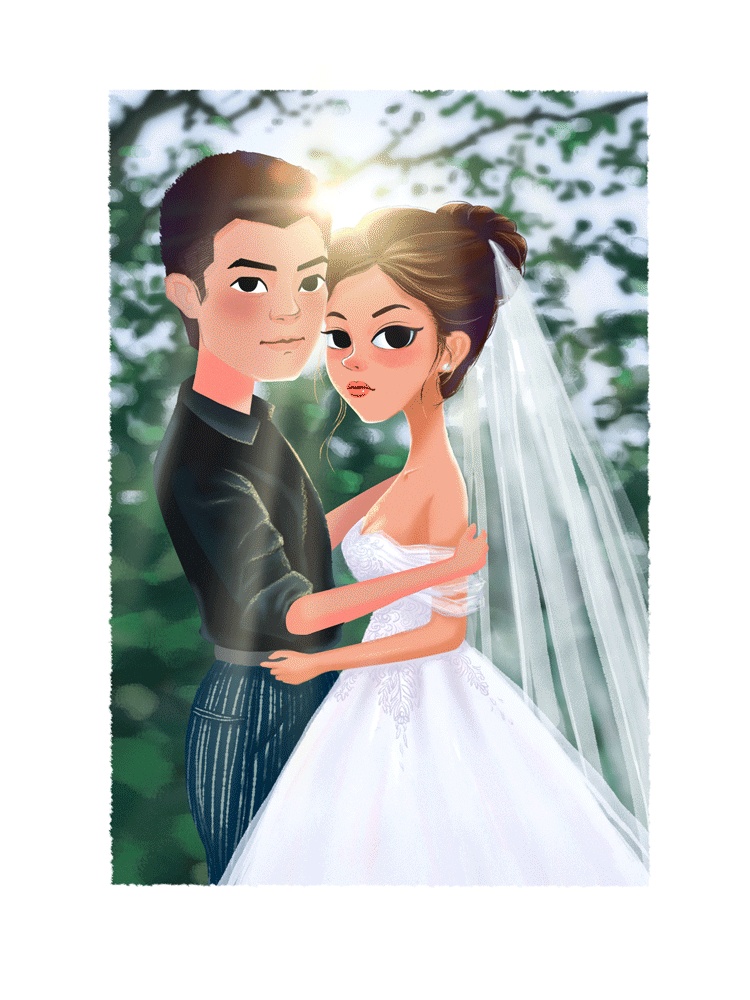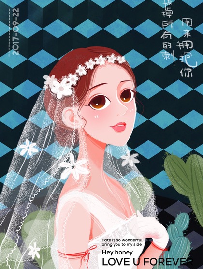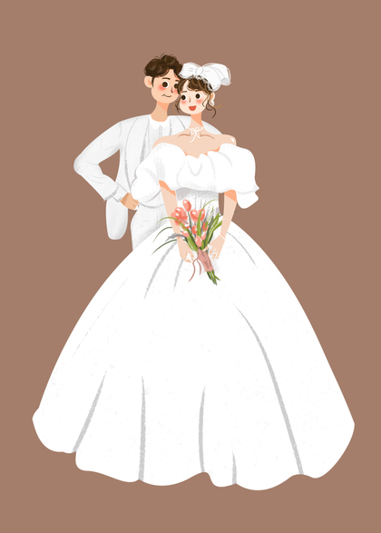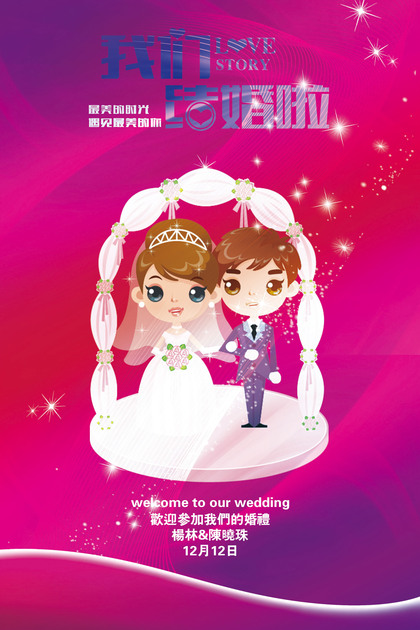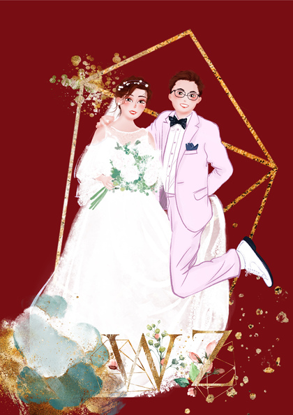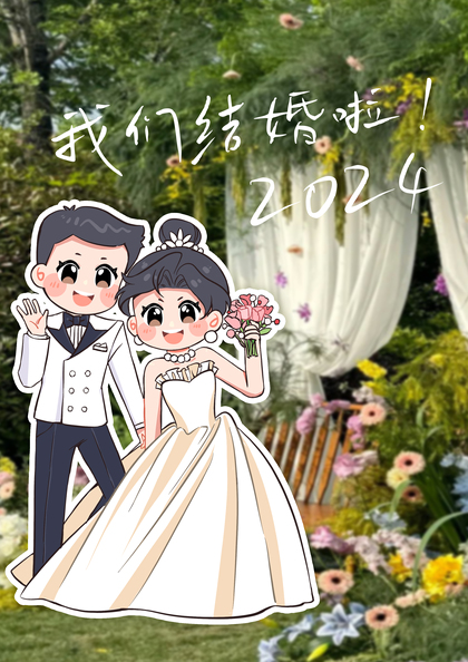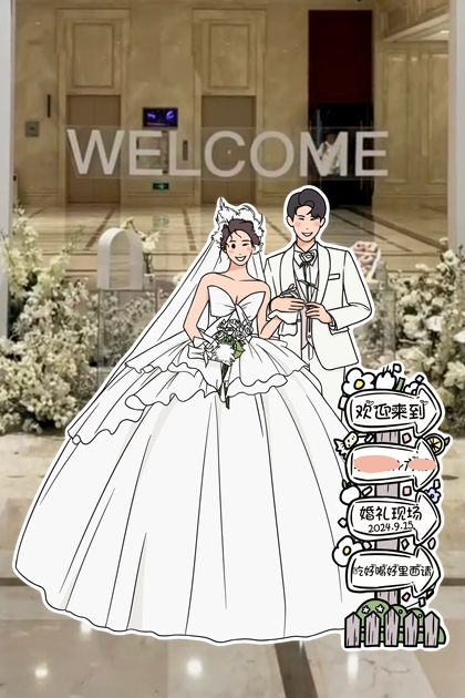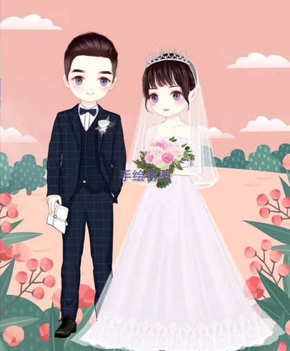 可可爱爱的q版人形立牌,祝福画的每对新人幸福长长久