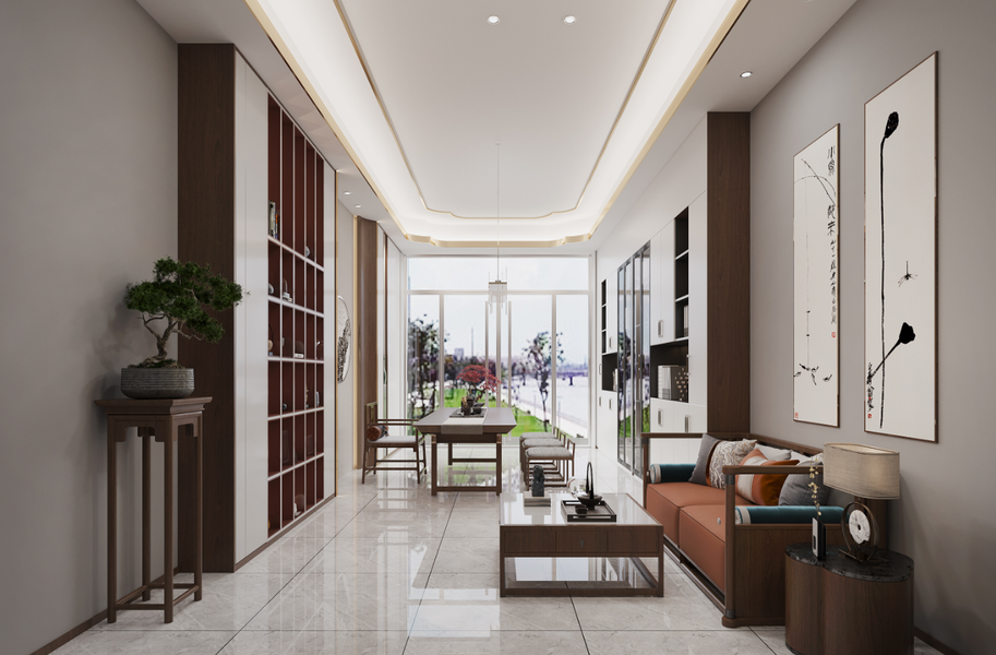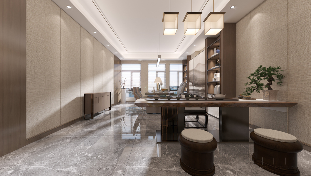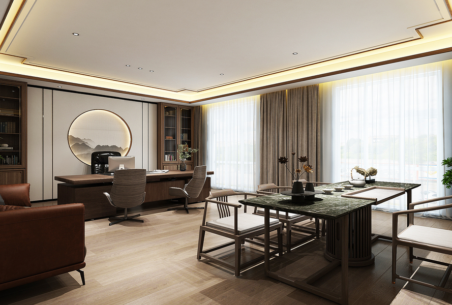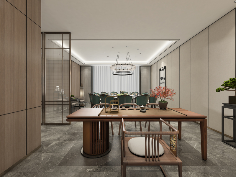 新中式办公室|私人会所|接待室|模糊功能的多变性空间