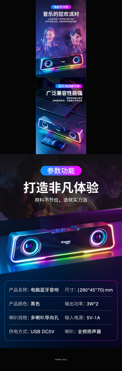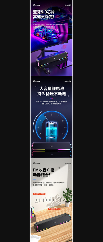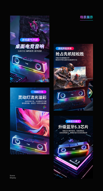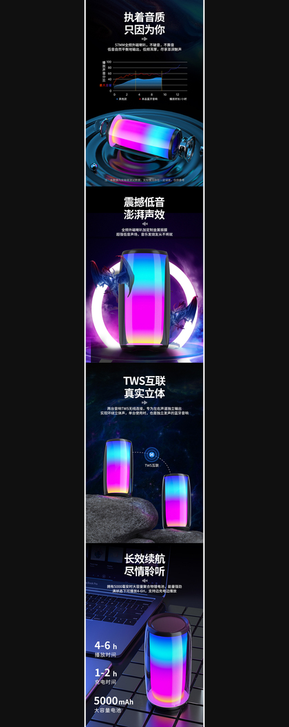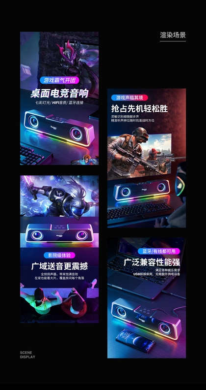 游戏蓝牙音响 炫彩风格化渲染详情页