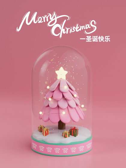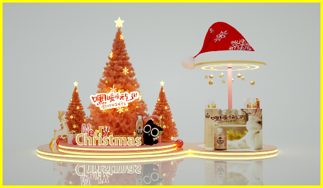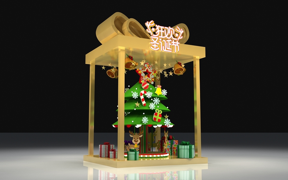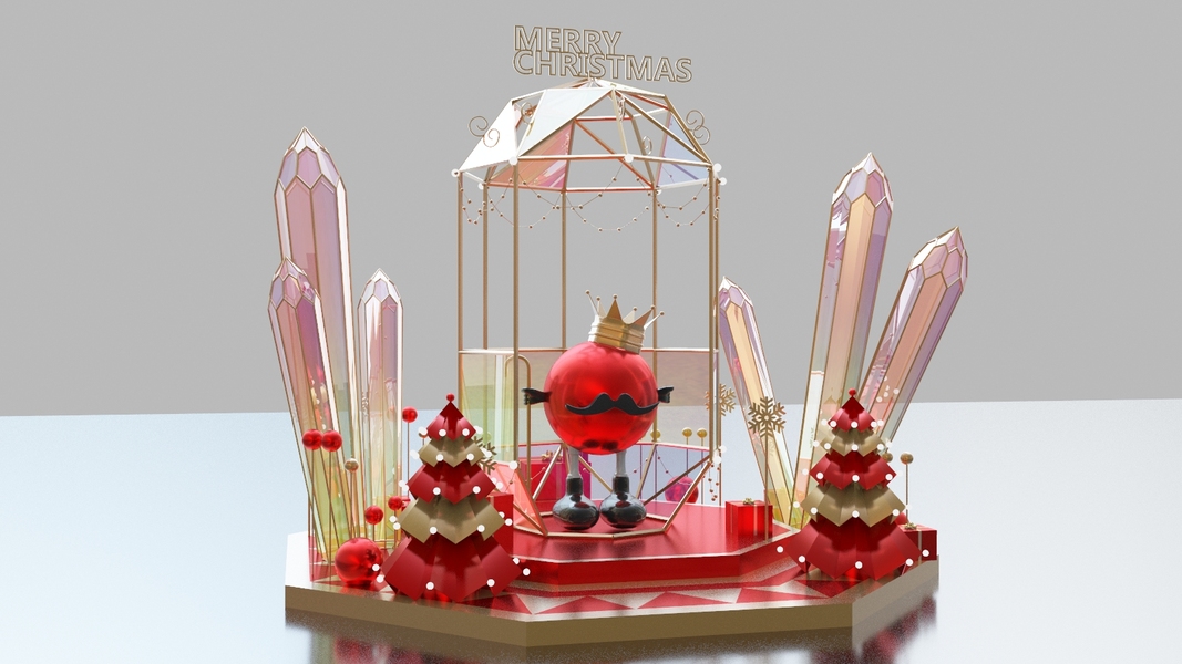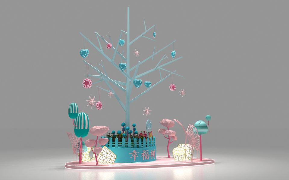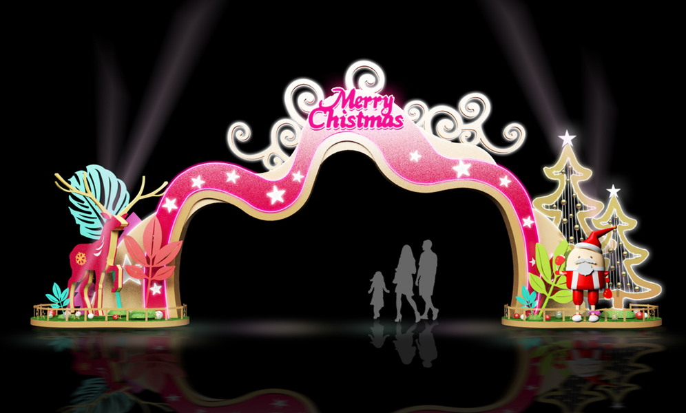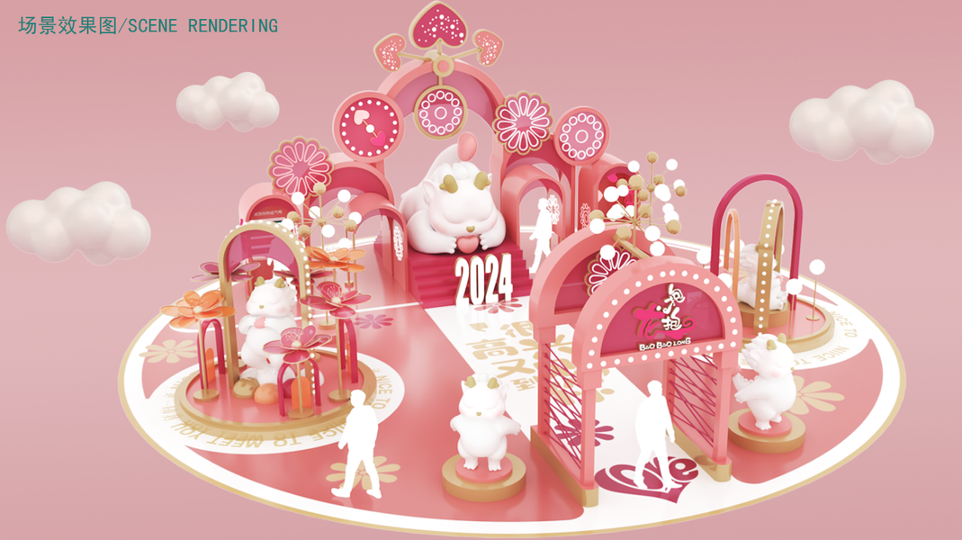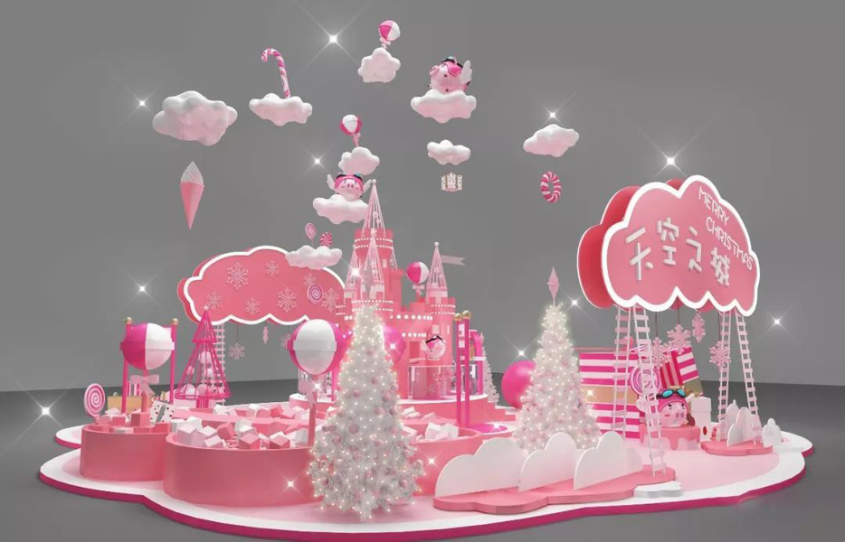 圣诞美陈猪年卡通少女心 快闪店 粉红 打卡点 3D效果图