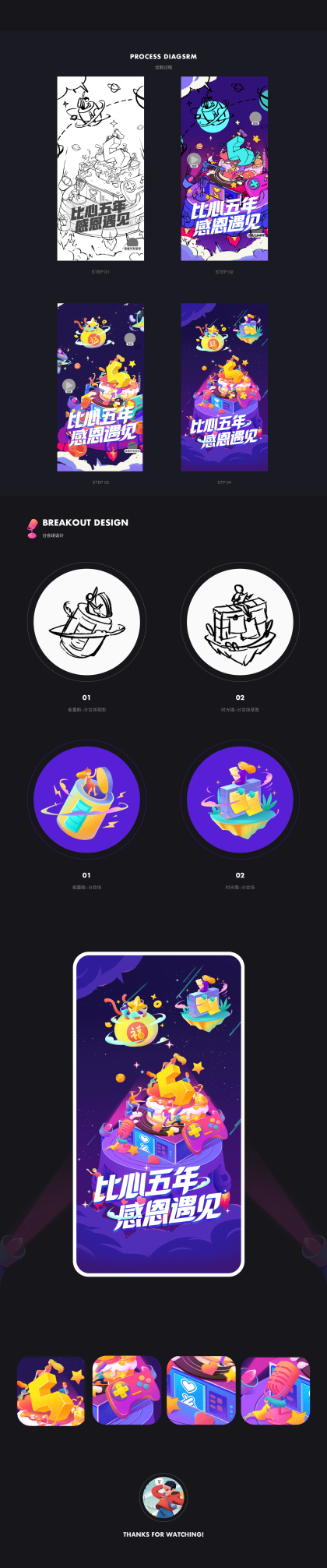 -比心五周年主会场插画设计-