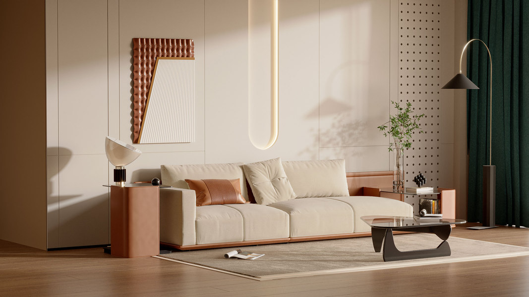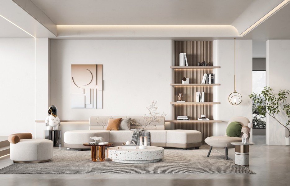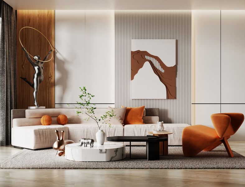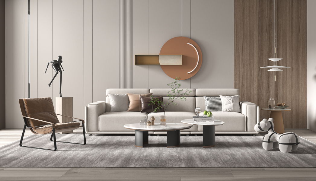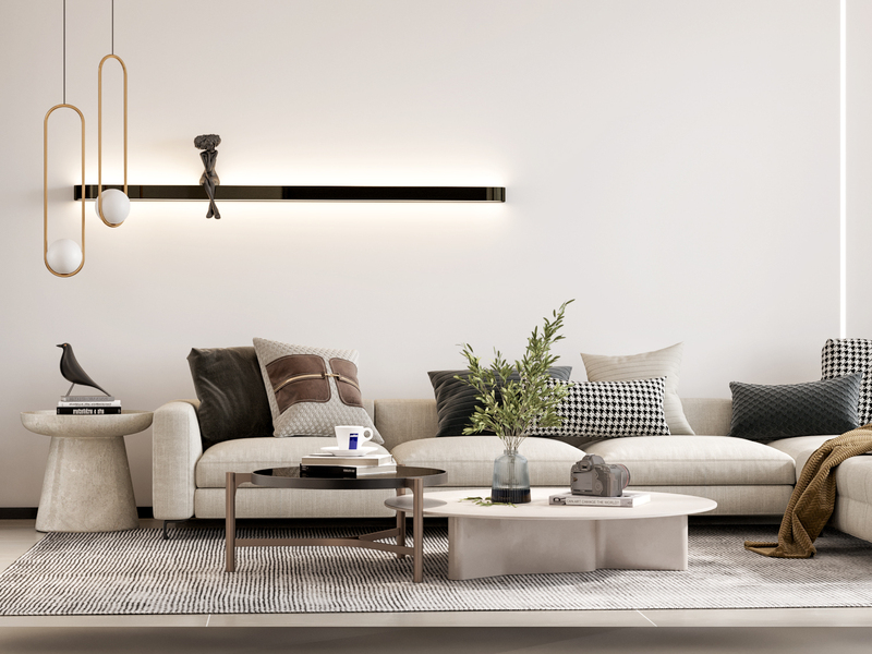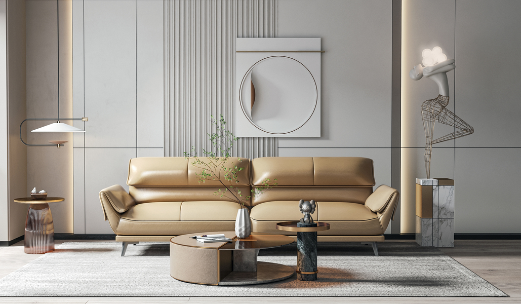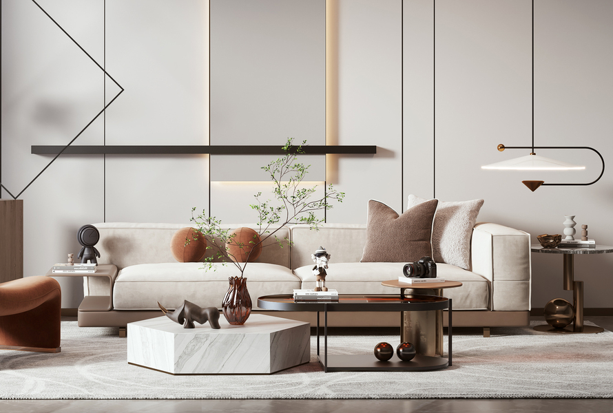 现代轻奢客厅 多人沙发 ,字母茶几组合