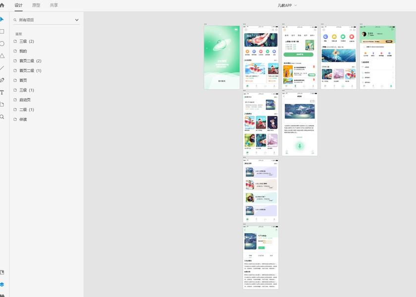 儿教APP读书阅读儿童读物听书绿色清新9页高保真含交互