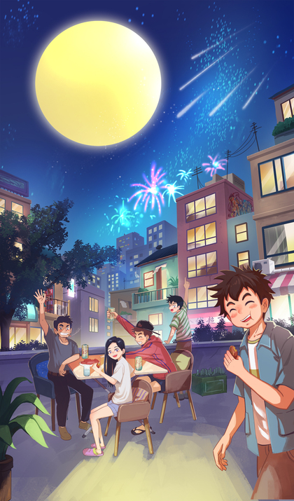 王老吉中秋H5插画