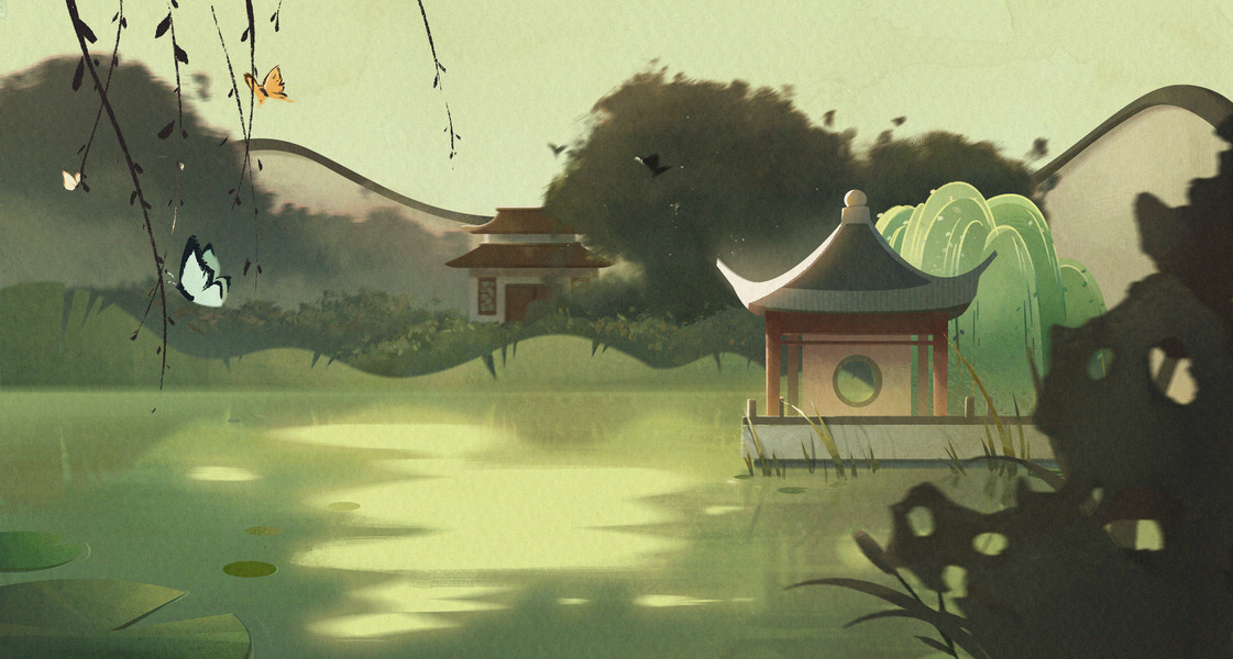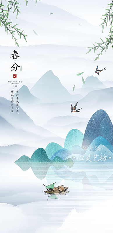 春季节气山水意境插画