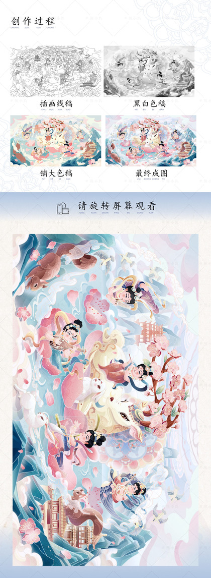 山海经系列 年中总结(水彩手绘插画创作)