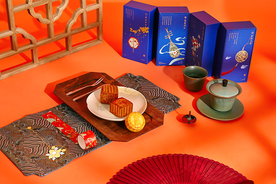 月饼产品拍摄-桃山皮/流心/广式月饼-月饼国潮插画包装