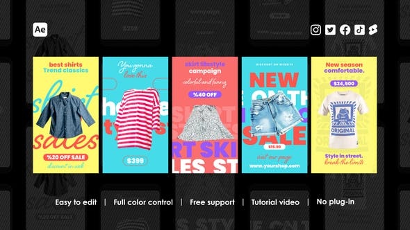 AE模板 | 竖屏时尚食物标题介绍商店销售购物社交媒体