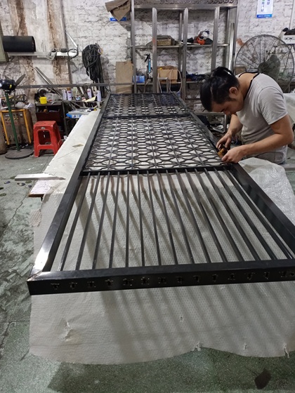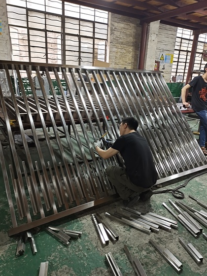 黑金不锈钢点焊屏风、简易的线条新中式装饰不简单
