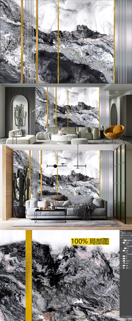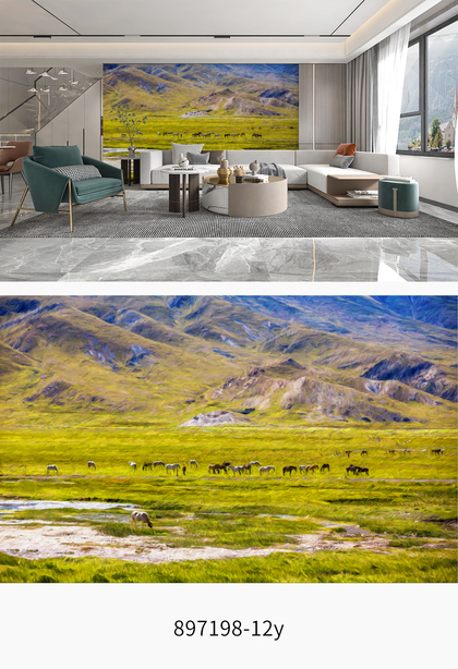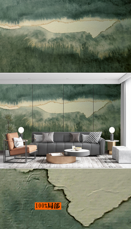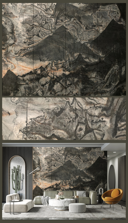 新中式山水石纹山水大理石纹微晶石背景墙