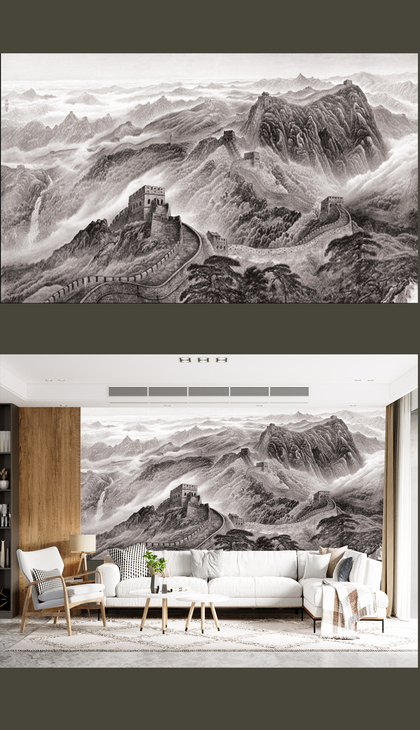 中式艺术壁纸电视背景影视墙纸客厅定制壁画墙布