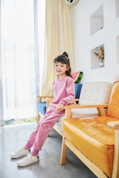 义乌儿童保暖内衣,室内米色底保暖内衣男女模特拍摄