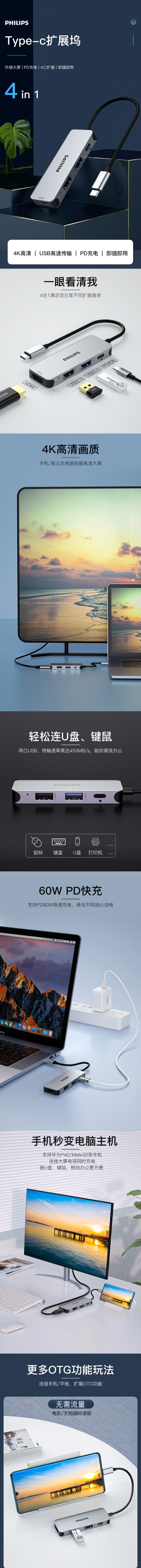 飞利浦Type-c拓展坞笔记本专用手机电脑投屏外接