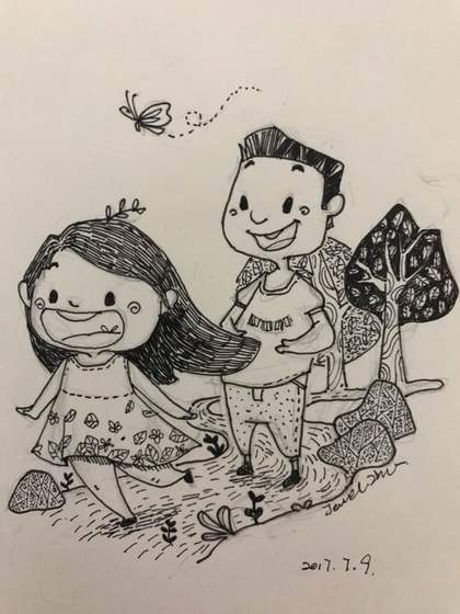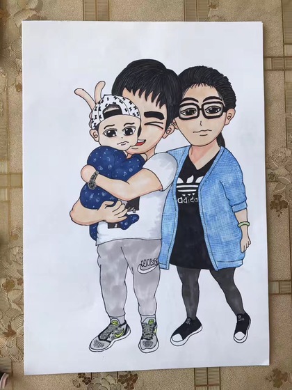 圆圆和奥迪小朋友的似颜绘