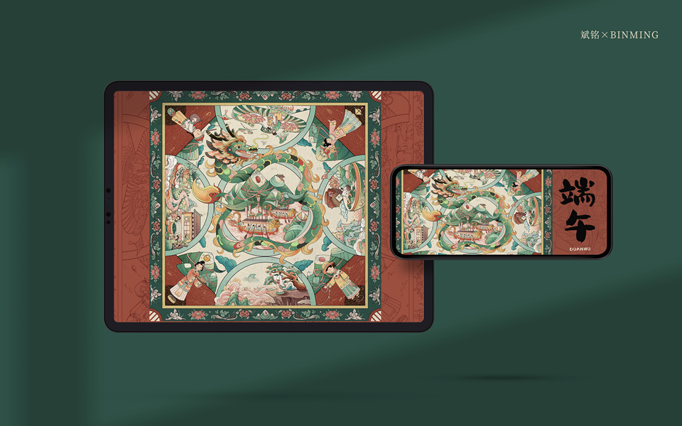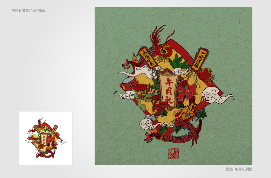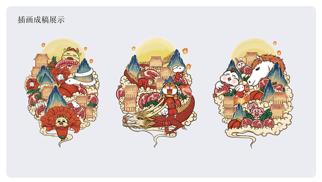 中秋月饼-节日礼盒-国潮风-商业插画礼盒包装