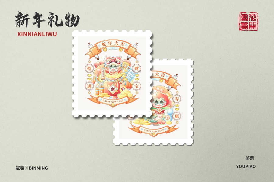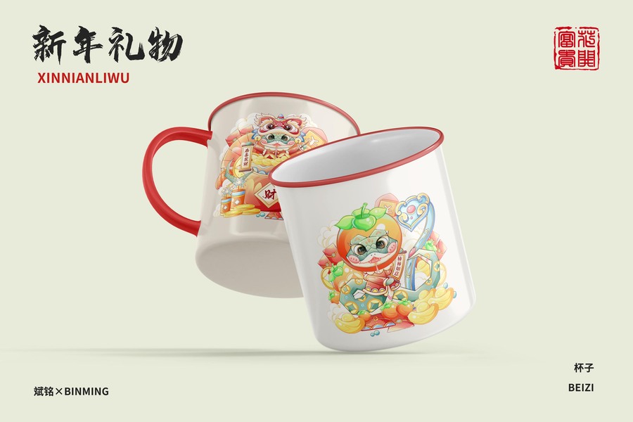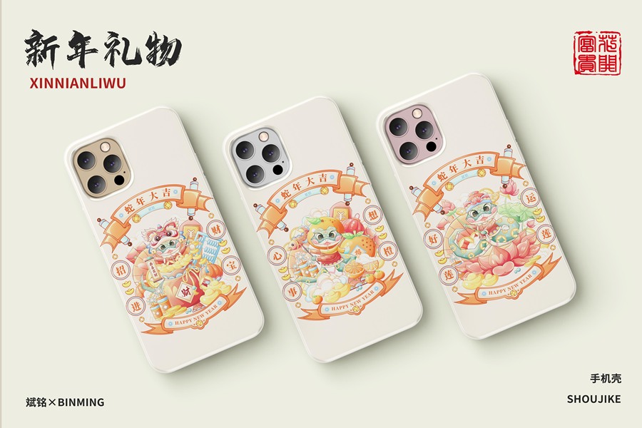 萌蛇迎春系列/蛇年ip设计·蛇年·新年 插画