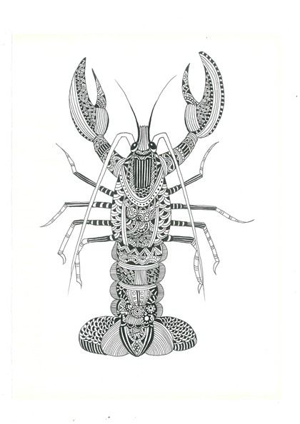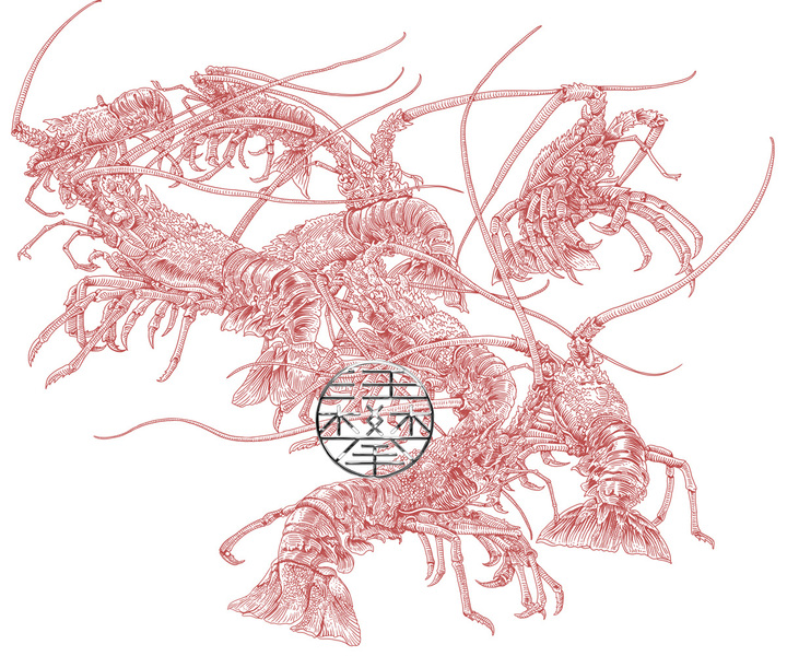 龙虾/带鱼/鸡版画,农产品包装插画设计