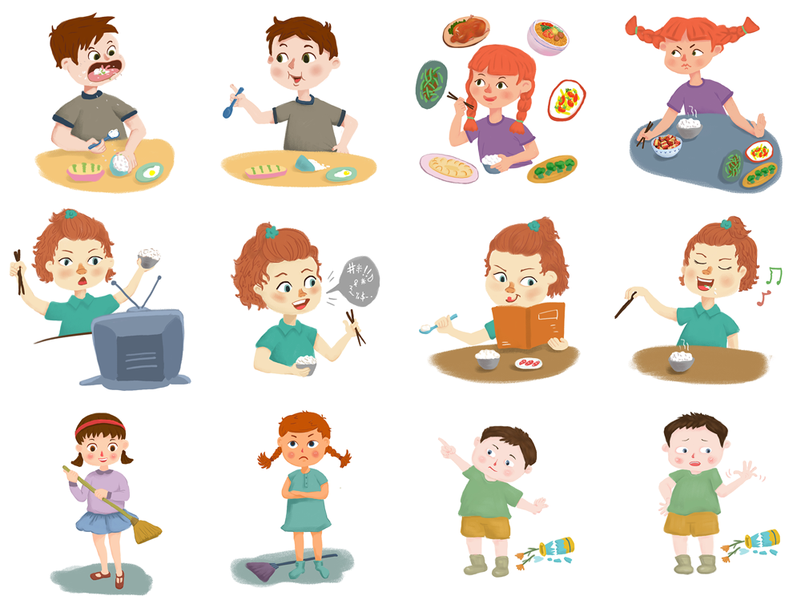 《垃圾不乱丢》&《好好吃饭》儿童小绘本插图