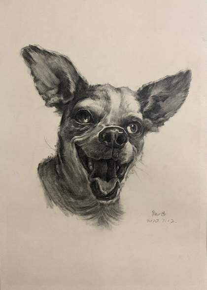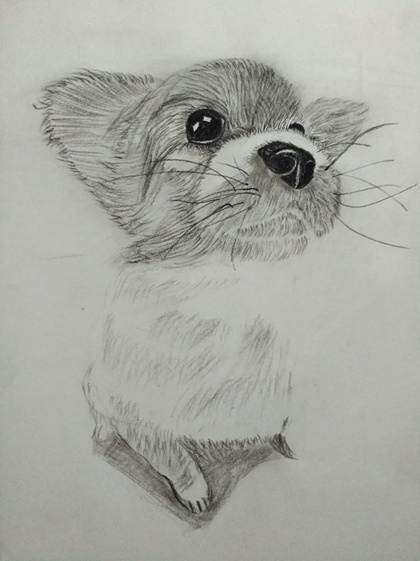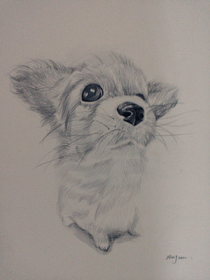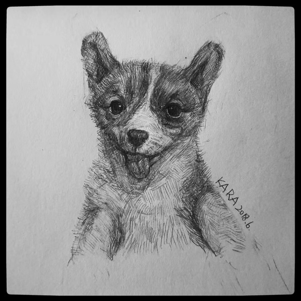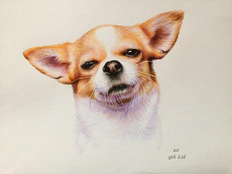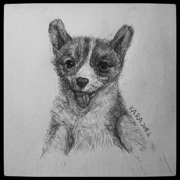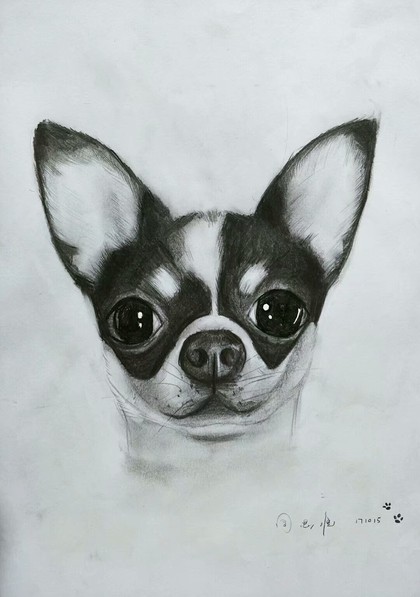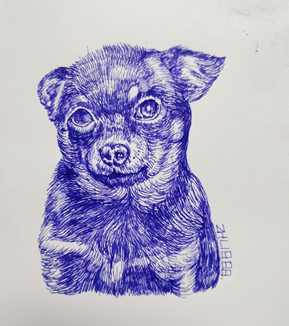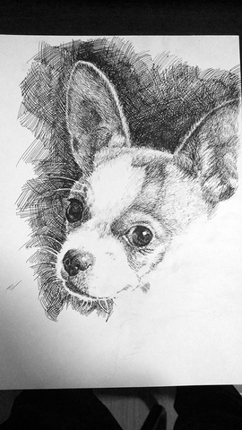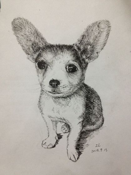钢笔画(水笔画)处女作,自家的吉娃娃小狗