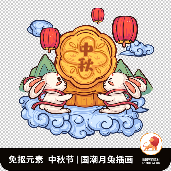 国潮月兔中秋节素材免抠元素插画 | 设图网