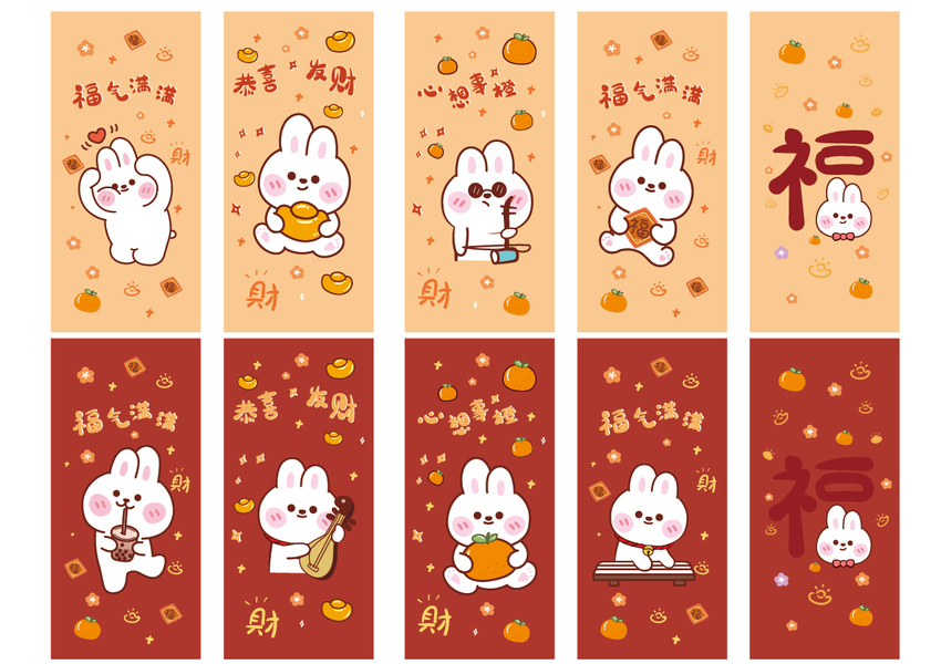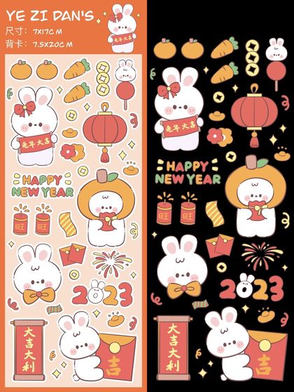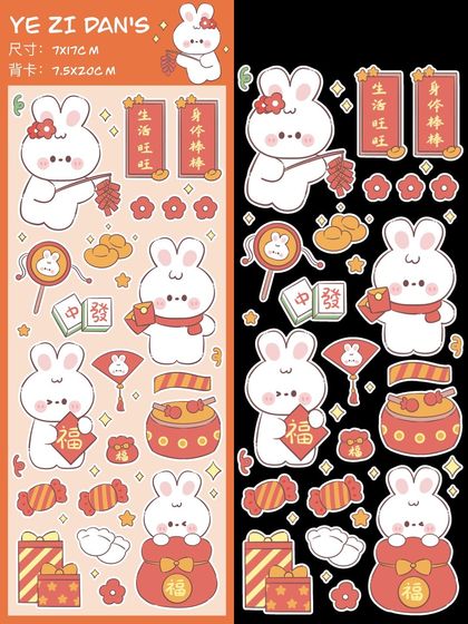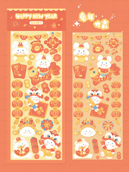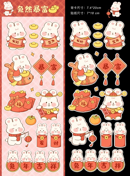 原创新年咕卡贴纸丨兔然暴富丨兔来运转