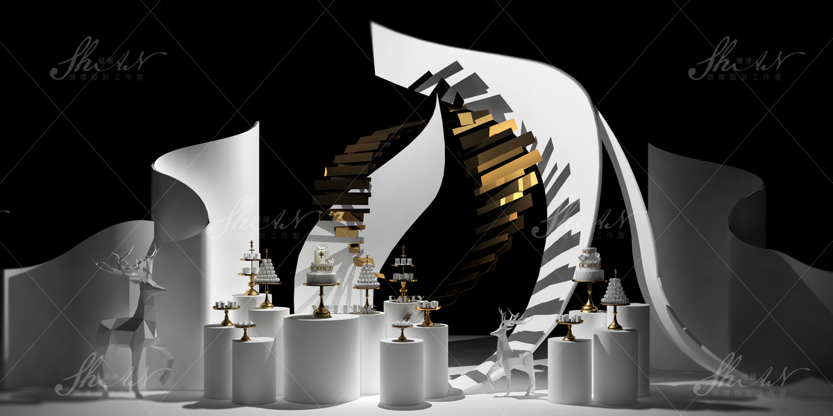 3D婚礼设计作品——纯白婚礼甜品台