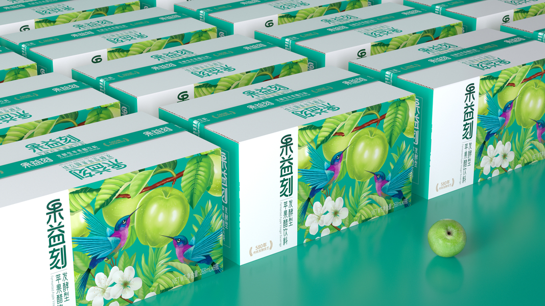 {原创}维纳斯苹果水果连枝带叶写实风格手绘包装设计