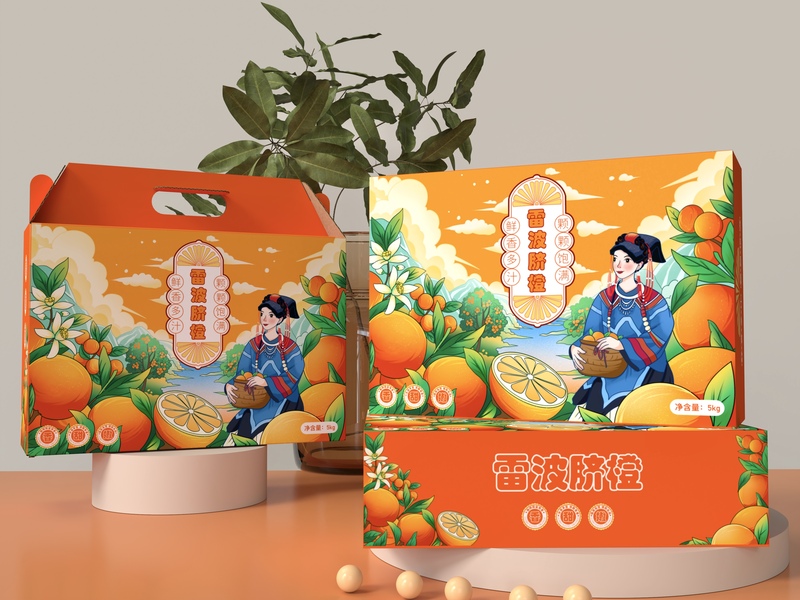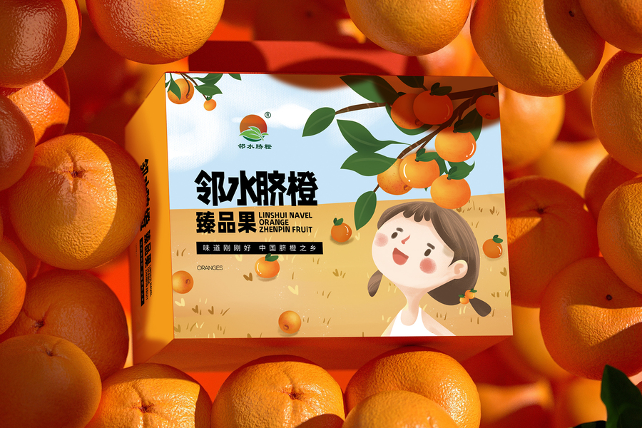 脐橙包装甜橙包装插画包装水果插画水果包装设计