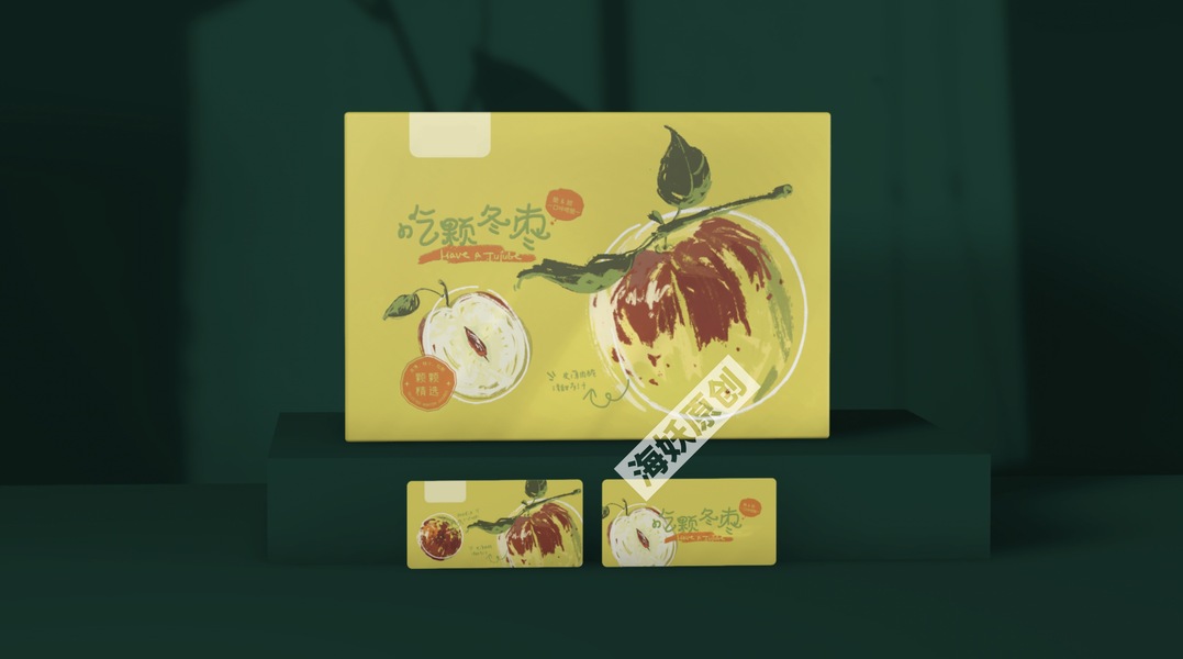 {原创}冬枣水果零食礼盒手绘插画包装设计