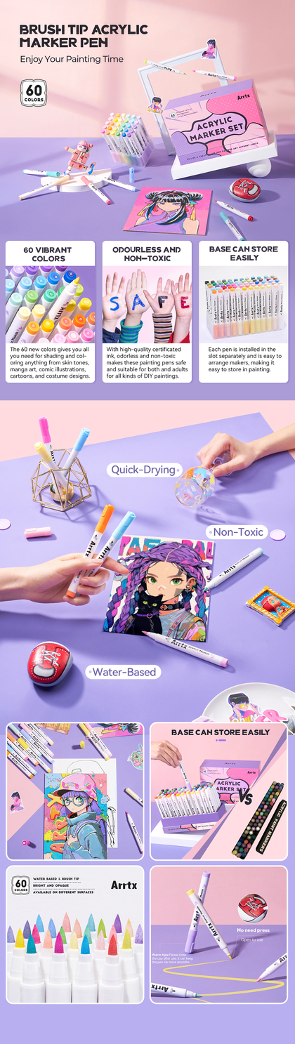 Arrtx | 60色丙烯马克笔亚马逊套图设计