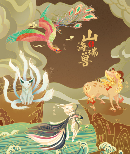 商业潮流丨十二生肖+四大神兽+山海瑞兽原创系列插画