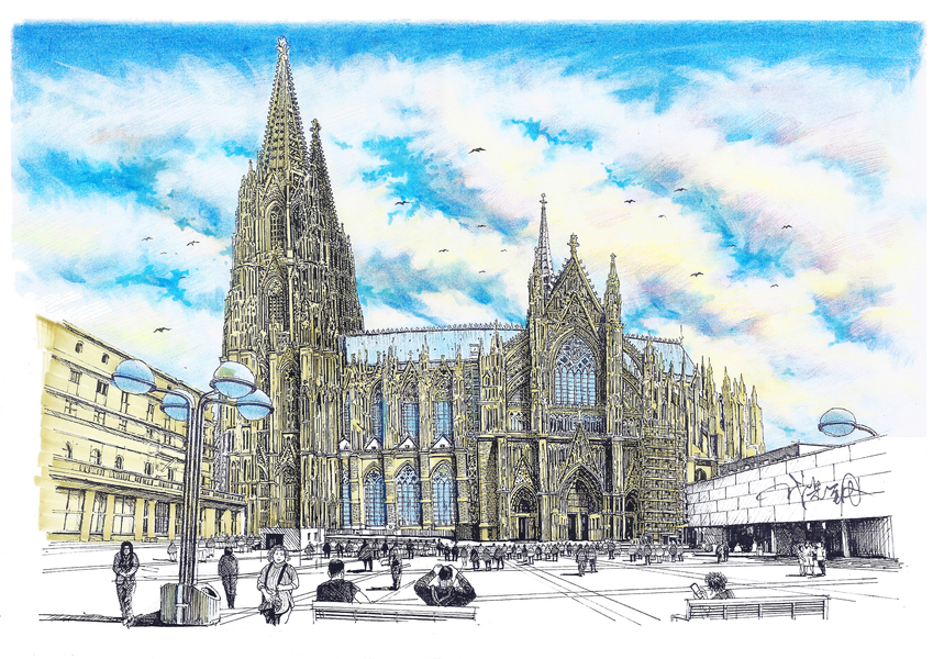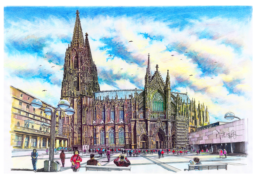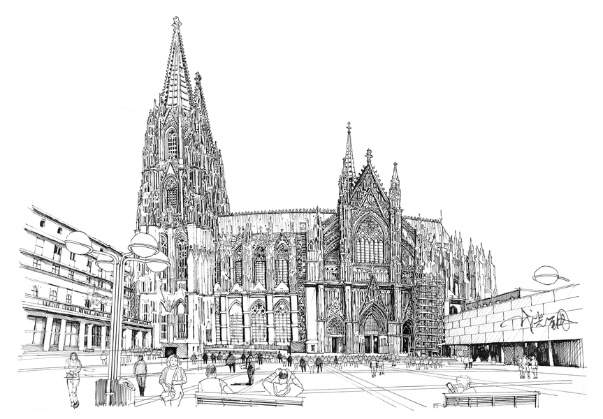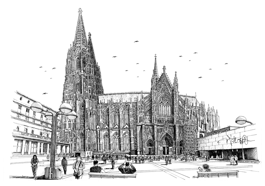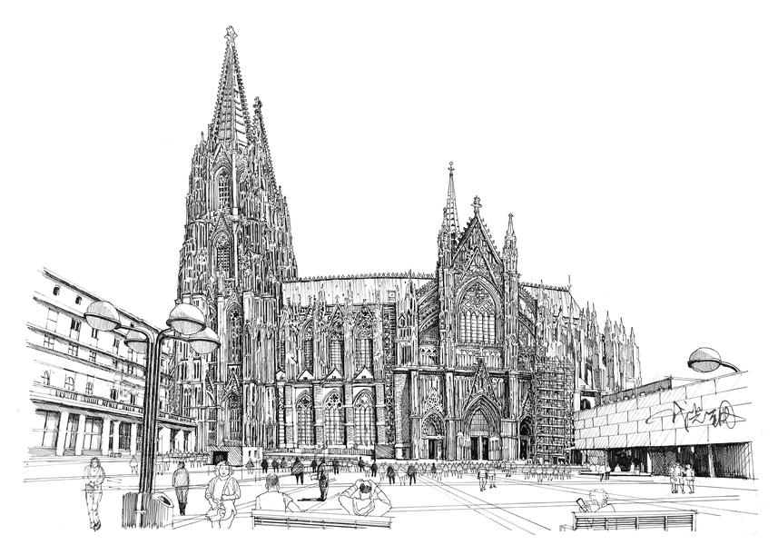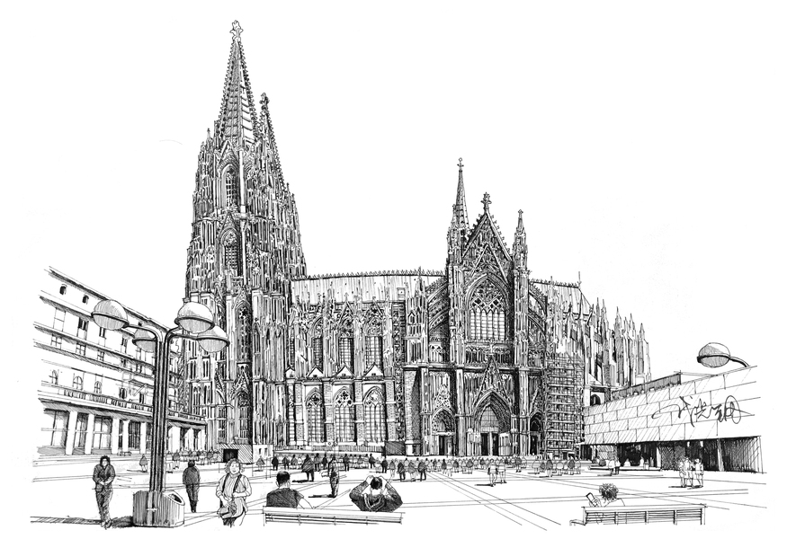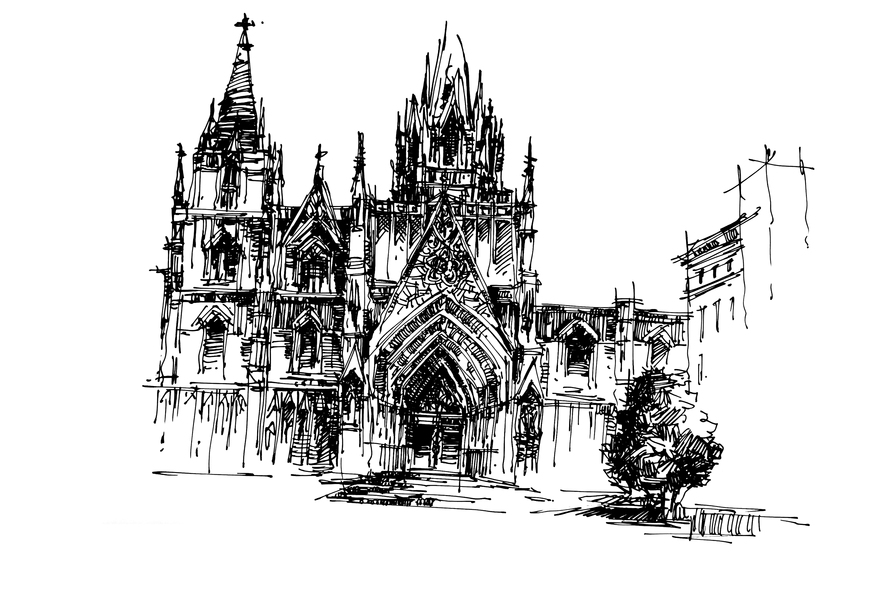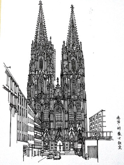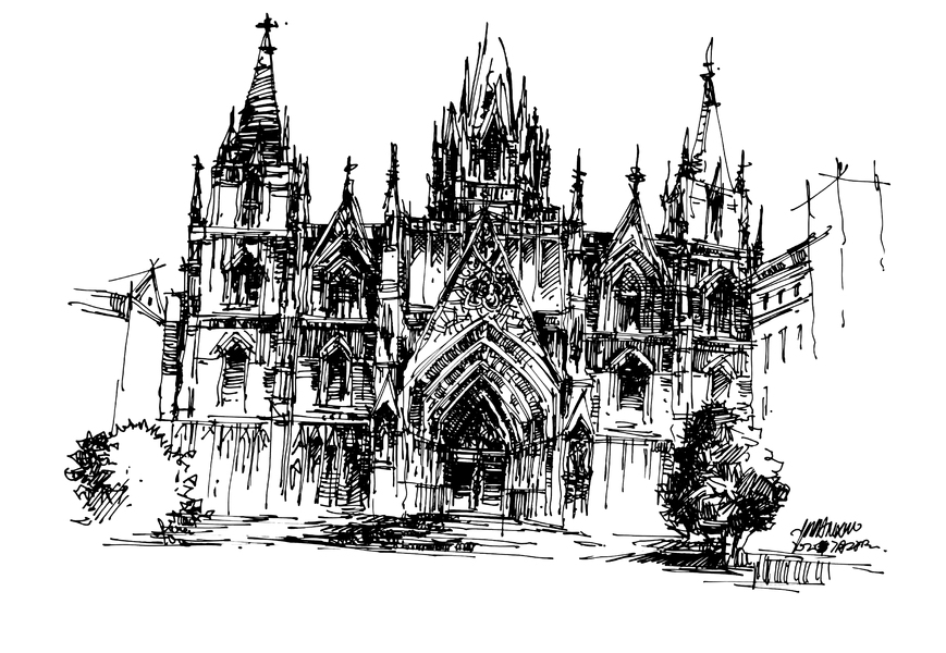 欧式教堂-白鹿猿钢笔画教程(步骤分享)