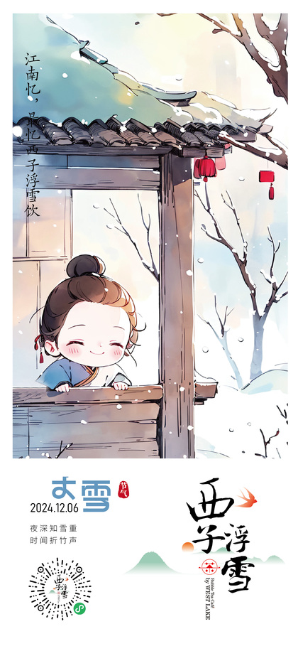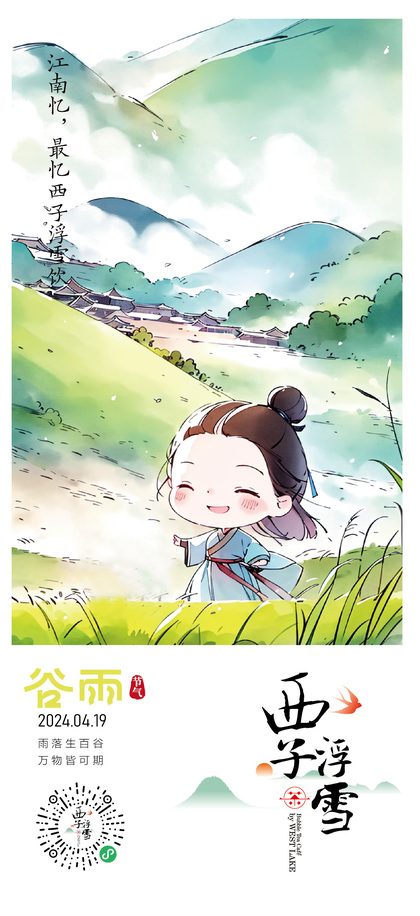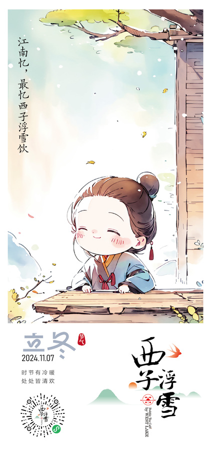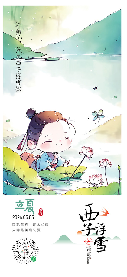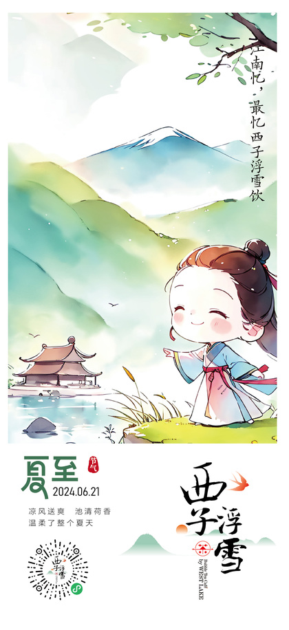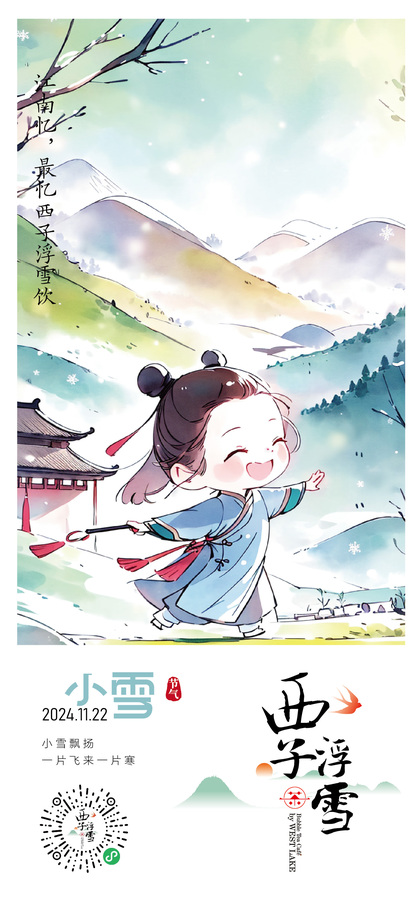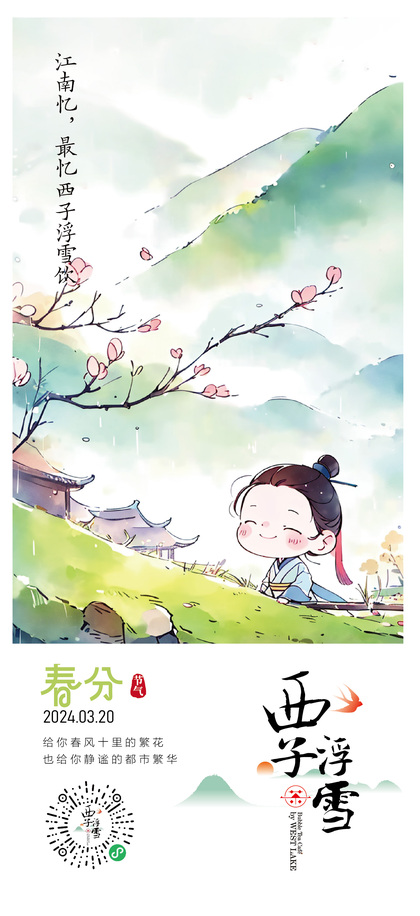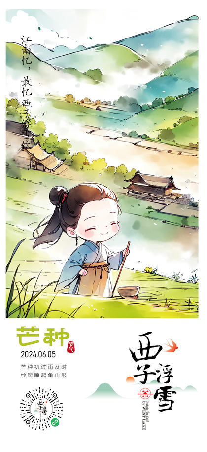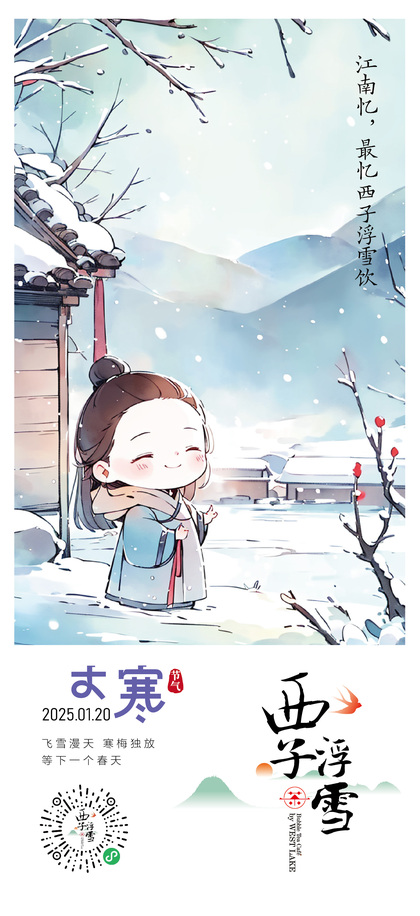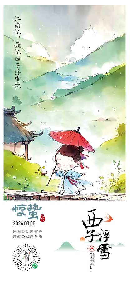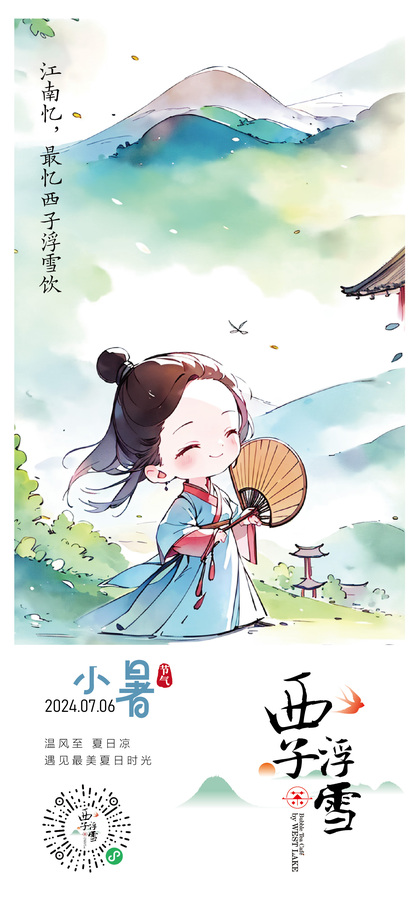 西子浮雪奶茶品牌茶饮品牌设计24二十四节气插画海报