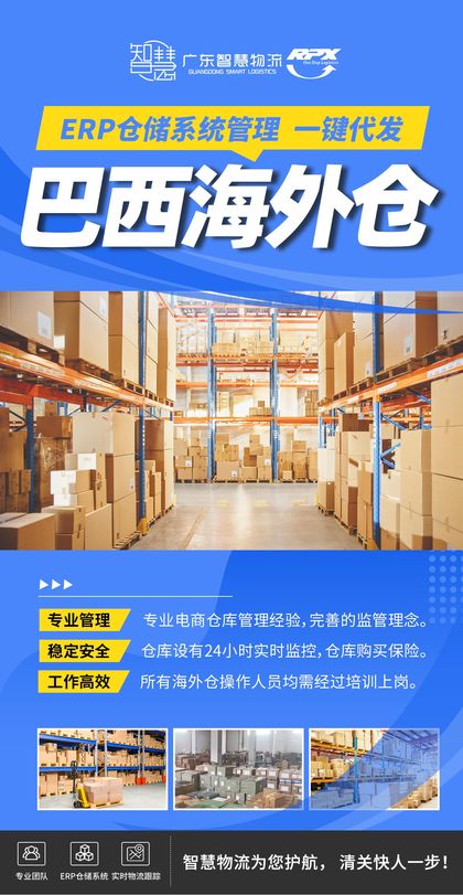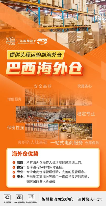 巴西海外仓 ERP仓储系统 24小时出单 海报
