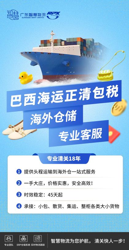 巴西海运双清,巴西海外仓 海运时效稳定 海报