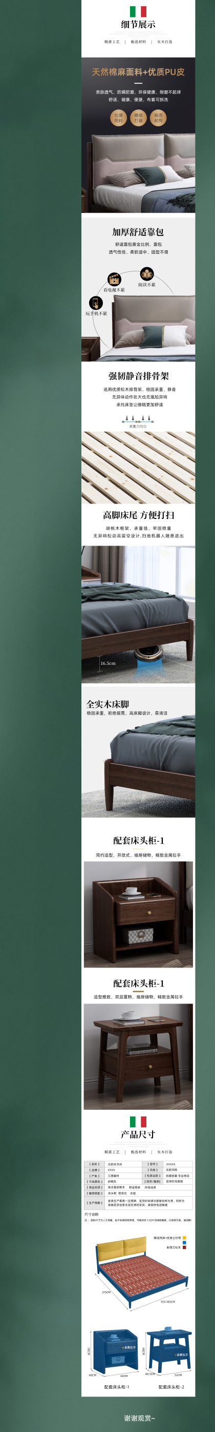 意式北欧实木床详情 家具详情模板