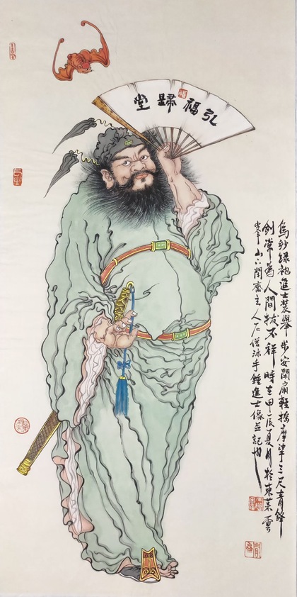 朱砂钟馗 张周畫 手绘写意国画人物 水墨画己裱