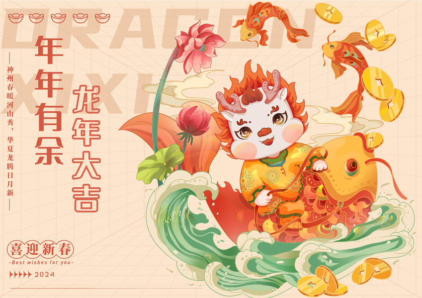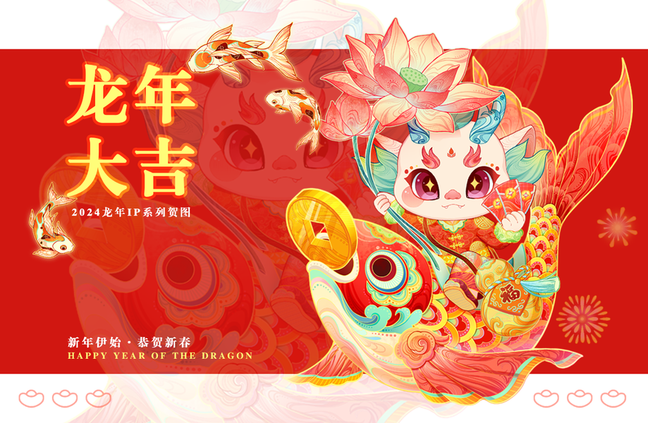 祥龙迎春-2024喜迎龙年IP国潮插画