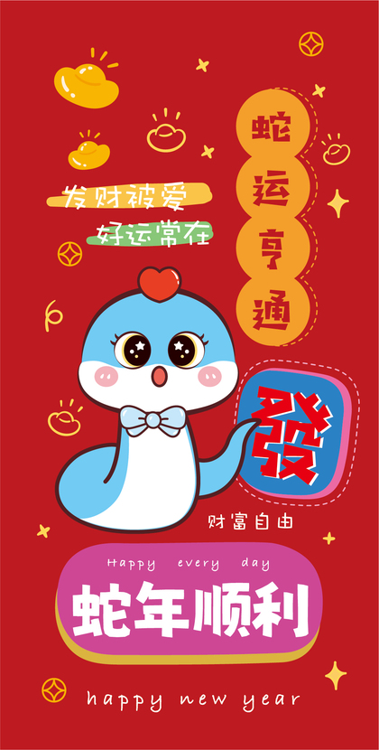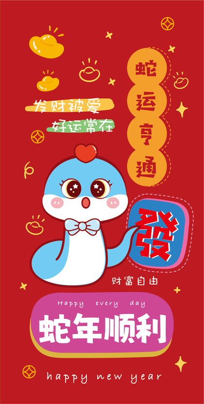蛇年红包壁纸新年纸质红包卡通可爱插画