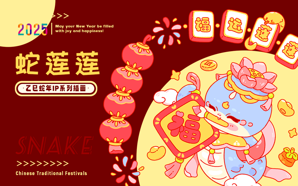 2025乙巳蛇年IP—蛇莲莲系列插画(可授权)